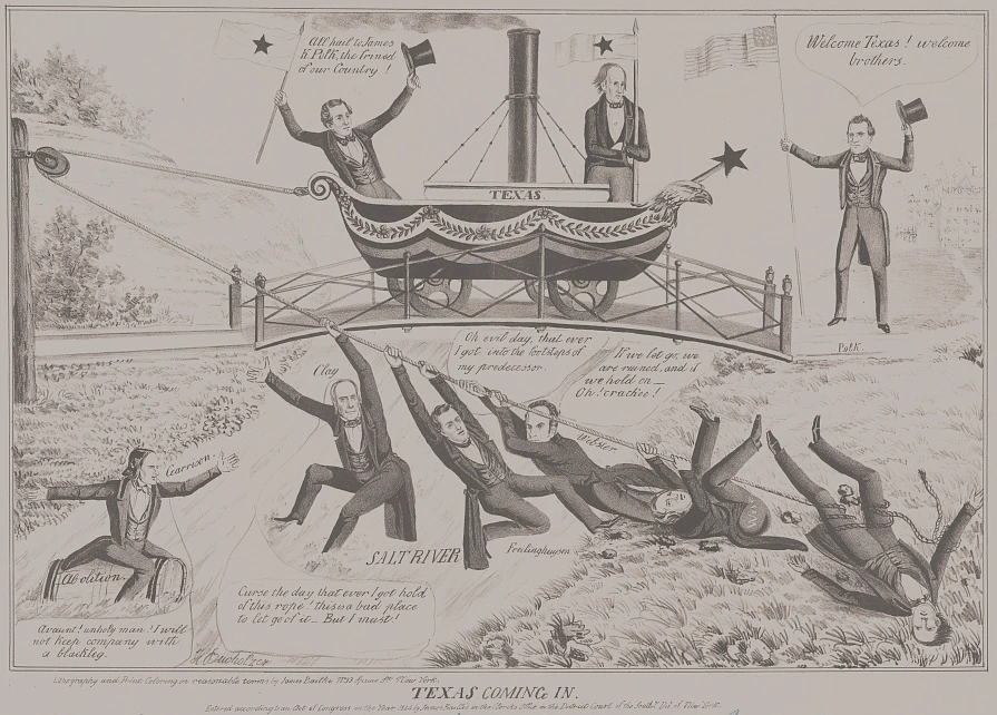 The debate over Texas consumed the 1844 presidential election. Democrat Martin Van Buren, a cautious anti-annexationist, was denied his party’s nomination. Instead, delegates turned to James K. Polk, an ardent expansionist who campaigned on the twin promises of annexing Texas and reoccupying Oregon. Polk’s message of Manifest Destiny resonated.