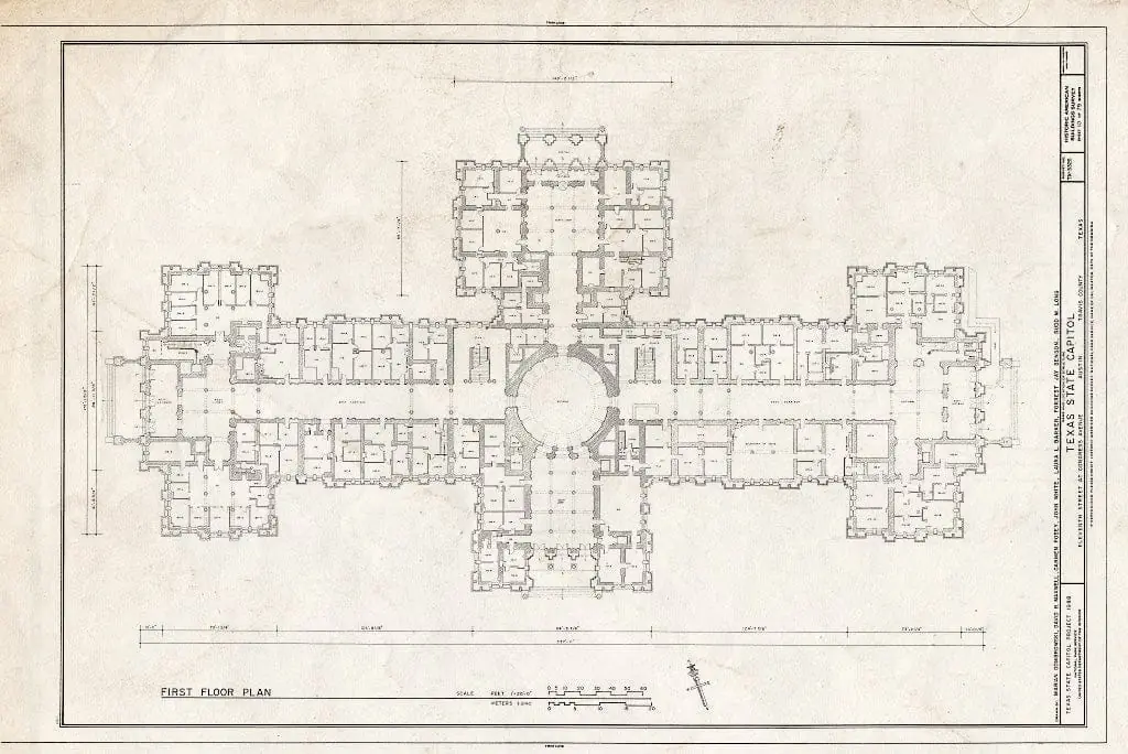 Built from 1882 to 1888, with an underground extension completed in 1993, the Capitol was designed by architect Elijah E. Myers in a Renaissance Revival style, blending classical and contemporary elements of the time. It features a distinctive dome, modeled after the U.S. Capitol building, and a rotunda adorned with murals depicting the history of Texas.
