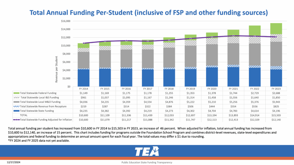 Total annual funding for Texas schools topped $85 billion in FY 2023.