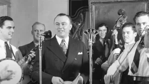 Before entering politics, O’Daniel achieved fame as a flour company executive and radio personality. As manager of the Burrus Mill and Elevator Company, he branded his Hillbilly Flour with wholesome Christian messaging and down-home appeal. His radio show, The Light Crust Doughboys, featured Western swing music, Scripture readings, and moral lessons. O’Daniel often closed broadcasts with a jingle that became his campaign slogan: “Pass the biscuits, Pappy!”