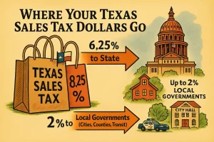 Local jurisdictions in Texas can levy an additional sales tax of up to 2%, making the maximum combined rate 8.25%. These local rates vary significantly. Some areas collect the full 2% allowed by law, while others charge a smaller amount or none at all.