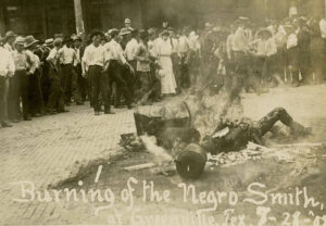 Many lynchings were held in full public view, often near courthouses or town squares, sometimes drawing thousands of spectators. In one of the most infamous cases, 17-year-old Jesse Washington was burned alive in Waco in 1916 before a cheering crowd that included city officials and children. His mutilated body was dragged through the streets and photographed, and postcards of the lynching were later circulated. No one was prosecuted.